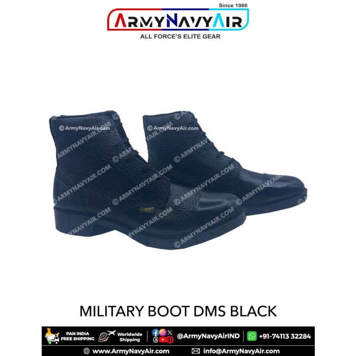 Buy Military Boot DMS Black from ArmyNavyAir – premium gear trusted by NCC, Scouts & Defence personnel across India. Established 1986.