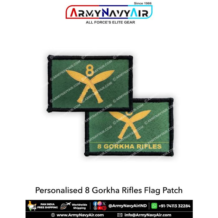 Experience the quality of 8 Gorkha Rifles Flag Patch : ArmyNavyAir.com from ArmyNavyAir – India’s trusted supplier of Defence, NCC, Scouts & Military gear since 1986. Made from premium materials and designed for durability, this product ensures comfort and reliability. Ideal for cadets, institutions, and collectors who value authenticity and performance. Fast nationwide delivery and customization support available.
