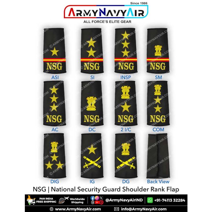 Experience the quality of NSG Shoulder Rank Flap "New Technology Merrow Border" : ArmyNavyAir.com from ArmyNavyAir – India’s trusted supplier of Defence, NCC, Scouts & Military gear since 1986. Made from premium materials and designed for durability, this product ensures comfort and reliability. Ideal for cadets, institutions, and collectors who value authenticity and performance. Fast nationwide delivery and customization support available.