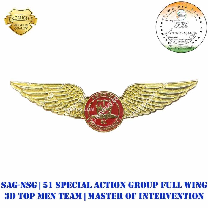 Experience the quality of SAG-NSG | 51 Special Action Group (3D) (Brass) : ArmyNavyAir.com from ArmyNavyAir – India’s trusted supplier of Defence, NCC, Scouts & Military gear since 1986. Made from premium materials and designed for durability, this product ensures comfort and reliability. Ideal for cadets, institutions, and collectors who value authenticity and performance. Fast nationwide delivery and customization support available.