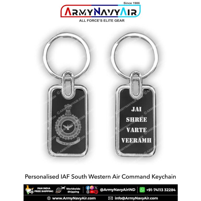 Experience the quality of Personalised Indian Air Force South Western Air Command IAF Keychain : ArmyNavyAir.com from ArmyNavyAir – India’s trusted supplier of Defence, NCC, Scouts & Military gear since 1986. Made from premium materials and designed for durability, this product ensures comfort and reliability. Ideal for cadets, institutions, and collectors who value authenticity and performance. Fast nationwide delivery and customization support available.